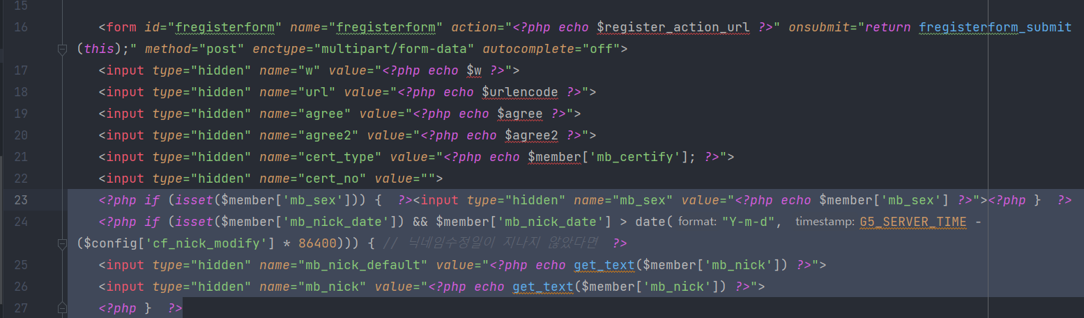 <?php if (isset 부터 <?php } ?> 까지 사진으로 보이는 드래그 영역 삭제.